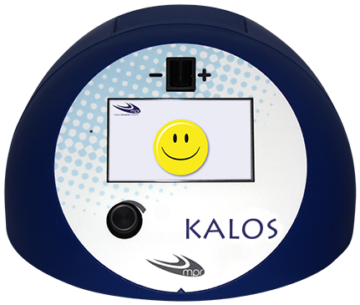 Användningen av Kalos är enkel och intuitiv eftersom alla tillgängliga funktioner visas samtidigt på en färgdisplay och kan väljas med hjälp av en enda kontrollratt. Utrustad med ett internt batteri, lätt och liten, är den lätt att använda både av vårdpersonal och patient.